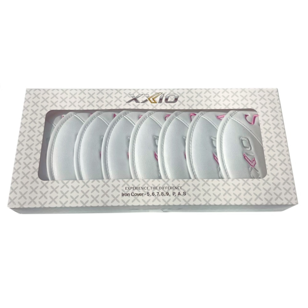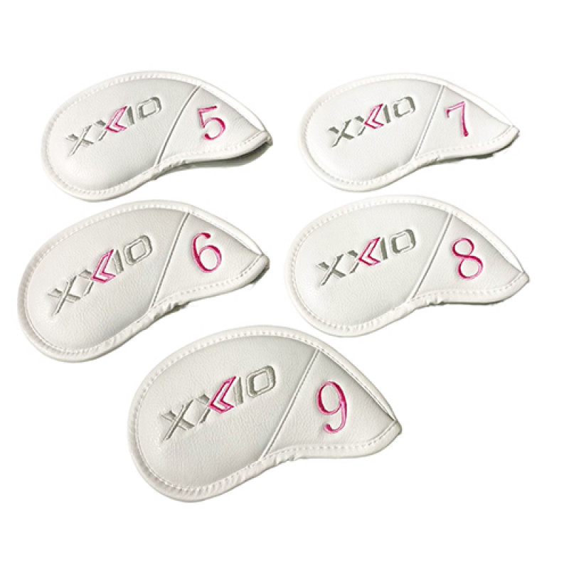 XXIO推出的高爾夫鐵桿套組,是採用合成皮材質,顏色以白金為主要配色,雙面都有鏽 logo跟數字,魔鬼氈黏貼可套住球桿的頭部,日常可以保護球桿頭部的表面。桿頭套的作用是避免在運輪過程中出現損壞表面的狀況,然而導致球桿擊球時發生角度誤差的問題。總共有8入裝,分別5、6、7、8、9、P、A、S。